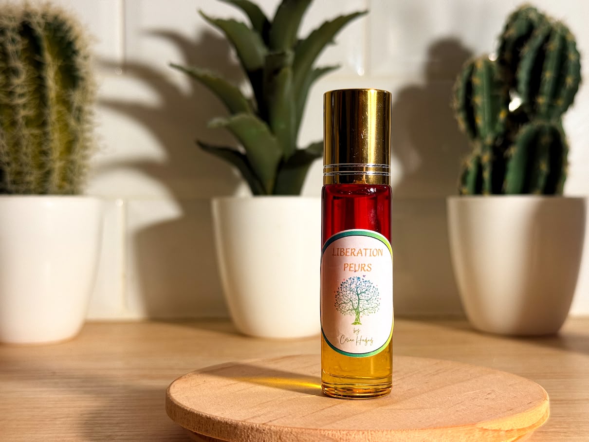 • En roll-on, sur des zones précises (poignets, chakra, nuque, plexus…)